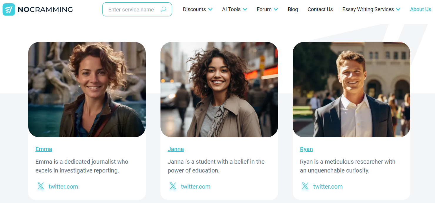 NoCramming is a review hub that focuses on academic tools and platforms only. The team consists mostly of professional reviewers with backgrounds in writing, editing, and research. One person on the team studies at university and brings a student’s point of view into the testing process.